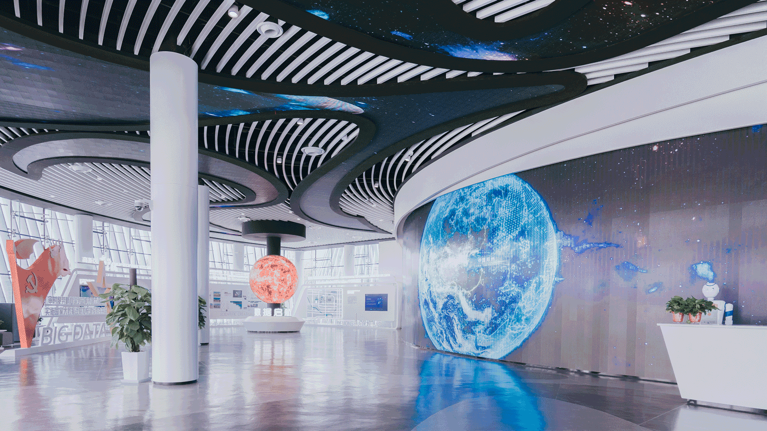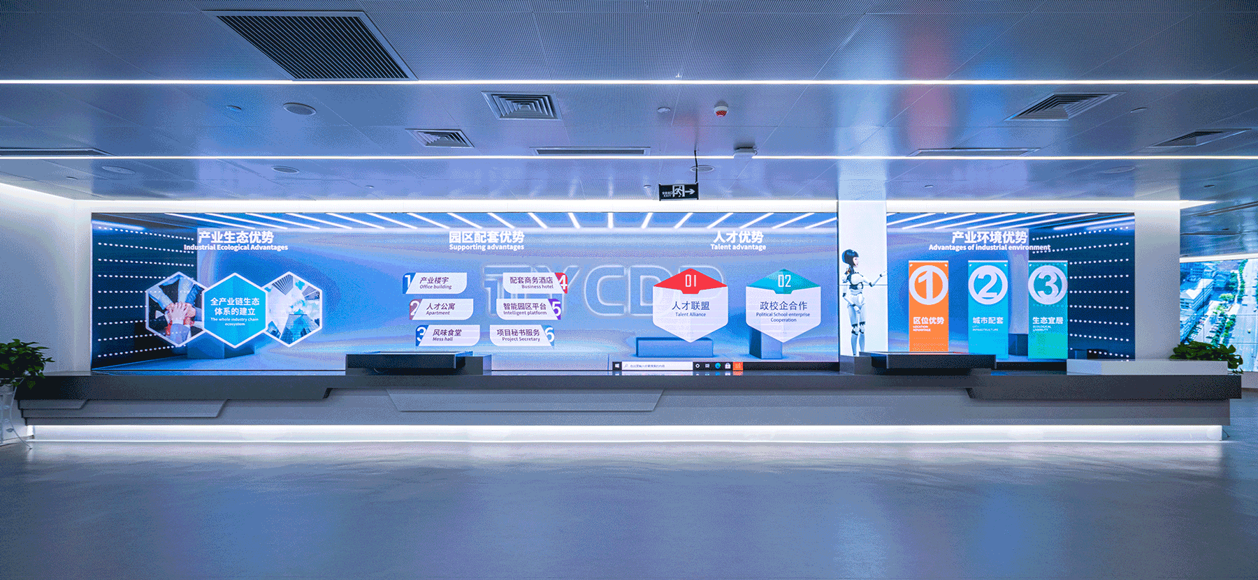 隨著大數(shù)據(jù)與云計算、5G通信網(wǎng)絡(luò)、網(wǎng)絡(luò)信息安全產(chǎn)品和服務(wù)等新一代信息技術(shù)的快速發(fā)展,人們的生活方式以及商業(yè)的運(yùn)作模式都悄然改變。借著國家政策扶持的東風(fēng),各地大數(shù)據(jù)產(chǎn)業(yè)園應(yīng)運(yùn)而生。 金螳螂文化匠心出品重慶永川大數(shù)據(jù)產(chǎn)業(yè)園、鄭州天健湖大數(shù)據(jù)產(chǎn)業(yè)園等主題展廳,通過創(chuàng)新設(shè)計,全方位展示大數(shù)據(jù)項(xiàng)目的運(yùn)用場景及產(chǎn)業(yè)園孵化能力,為引育創(chuàng)新人才、融通創(chuàng)新資本帶來更多可能。 永川大數(shù)據(jù)產(chǎn)業(yè)園 ······● — 重慶市 — ●······ 云谷·永川大數(shù)據(jù)展示中心位于重慶市永川區(qū)大數(shù)據(jù)產(chǎn)業(yè)園C區(qū),1000多平方米的展陳空間內(nèi),智慧城市、服務(wù)公社、AI、智行天下—雙城智能網(wǎng)聯(lián)經(jīng)濟(jì)走廊、云上橫店—全國先進(jìn)影像制作基地、數(shù)字孿生城市—城市數(shù)字化管理平臺、西部數(shù)據(jù)處理基地等區(qū)內(nèi)大數(shù)據(jù)產(chǎn)業(yè)匯聚于此。 大數(shù)據(jù)產(chǎn)業(yè)園將以科技驅(qū)動變革為契機(jī),助力永川打造新經(jīng)濟(jì)增長點(diǎn)。 追夢未來 大數(shù)據(jù)的無限可能 — Infinite Possibilities of Big Data — 展廳以“智慧永川·數(shù)據(jù)云谷”為主題,整體空間分為云端·智慧永川、沃土·助夢揚(yáng)帆、征程·銘記芳華、產(chǎn)業(yè)·云劃未來、愿景·云端萬象五大板塊,展示產(chǎn)業(yè)園以服務(wù)外包為基礎(chǔ),軟件信息、數(shù)據(jù)處理、數(shù)字內(nèi)容、電子商務(wù)融合發(fā)展的五大產(chǎn)業(yè)集群。 展館采用現(xiàn)代簡約風(fēng),將像素和數(shù)據(jù)流的概念融入空間。展品與傳統(tǒng)形式區(qū)分開,利用聲、光、電等多種表現(xiàn)手法,通過互動體驗(yàn)吸引參觀者的注意力。展項(xiàng)內(nèi)容靈活可變,能夠隨大數(shù)據(jù)的發(fā)展與變化持續(xù)更新。 虛擬主持人--產(chǎn)業(yè)園風(fēng)貌總覽 運(yùn)用達(dá)瓦的動態(tài)捕捉和人臉捕捉技術(shù),構(gòu)建以真人面部和機(jī)械軀干合成的虛擬主持人;通過多媒體電子屏幕與模塊芯片上下聯(lián)動,詳細(xì)介紹永川大數(shù)據(jù)產(chǎn)業(yè)園便捷交通、宜居宜業(yè)、人才資源豐富等多元化優(yōu)勢。 莫比烏斯環(huán)--大數(shù)據(jù)川流不息 以“莫比烏斯環(huán)”作為基礎(chǔ)外形,以數(shù)字化循環(huán)流動的影像構(gòu)建藝術(shù)裝置,進(jìn)入展示主題”讓大數(shù)據(jù)永遠(yuǎn)川流不息”。墻面光效與莫比烏斯環(huán)畫面聯(lián)動,使參觀者在如夢似幻的氛圍中感受大數(shù)據(jù)的魅力。 天健湖智聯(lián)網(wǎng)產(chǎn)業(yè)園 ······● — 鄭州市 — ●······ 天健湖智聯(lián)網(wǎng)產(chǎn)業(yè)園位于鄭州市高新技術(shù)開發(fā)區(qū),以國家數(shù)字經(jīng)濟(jì)戰(zhàn)略為指導(dǎo),構(gòu)建以智能物聯(lián)網(wǎng)為核心,以人工智能、大數(shù)據(jù)、5G、區(qū)塊鏈、云計算為支撐的“1+5+N產(chǎn)業(yè)生態(tài)體系”,賦能政務(wù)、工業(yè)、交通、醫(yī)療、農(nóng)業(yè)、能源、教育等各個領(lǐng)域,建設(shè)高品質(zhì)生態(tài)智慧園區(qū)。 展示中心位于產(chǎn)業(yè)園北地塊東北角,建筑面積約3000平方米,是一座集展示、體驗(yàn)于一體的現(xiàn)代科技展館。 賦能中原 點(diǎn)亮數(shù)據(jù)新未來 — ARTIFICIAL INTELLIGENCE — 天健湖智聯(lián)網(wǎng)產(chǎn)業(yè)園展示中心分為產(chǎn)業(yè)高新、產(chǎn)業(yè)宏圖、產(chǎn)業(yè)融合、數(shù)據(jù)宏圖等板塊,配套有路演廳、會議室等共享空間。 SPACE DESIGN 展廳設(shè)計之初,金螳螂文化的設(shè)計團(tuán)隊充分解讀建筑設(shè)計語言,依據(jù)建筑螺旋式形態(tài)進(jìn)行展示布局劃分,解決了異形形態(tài)建筑柱子過多、影響參觀流線的難題。將建筑中“力”的匯聚點(diǎn)與展陳內(nèi)容的“核”——數(shù)字沙盤匯聚于一點(diǎn),形成“數(shù)據(jù)之眼”。 源于對設(shè)計品質(zhì)與落地效果的不懈追求,由金螳螂文化打造的天健湖智聯(lián)網(wǎng)產(chǎn)業(yè)園展示中心項(xiàng)目獲得中國建筑裝飾協(xié)會“2020年度建筑裝飾行業(yè)科學(xué)技術(shù)獎——設(shè)計創(chuàng)新獎”。 LED星云數(shù)據(jù)水流幕、超大球幕演繹、數(shù)字沙盤秀場、飛屏聯(lián)動講解系統(tǒng)、全沉浸式未來影院……通過亮點(diǎn)展項(xiàng)的演繹,串聯(lián)起流暢的參觀路線,給參觀者直觀的智能體驗(yàn),感受產(chǎn)業(yè)園“賦能中原 數(shù)創(chuàng)未來”的初心。