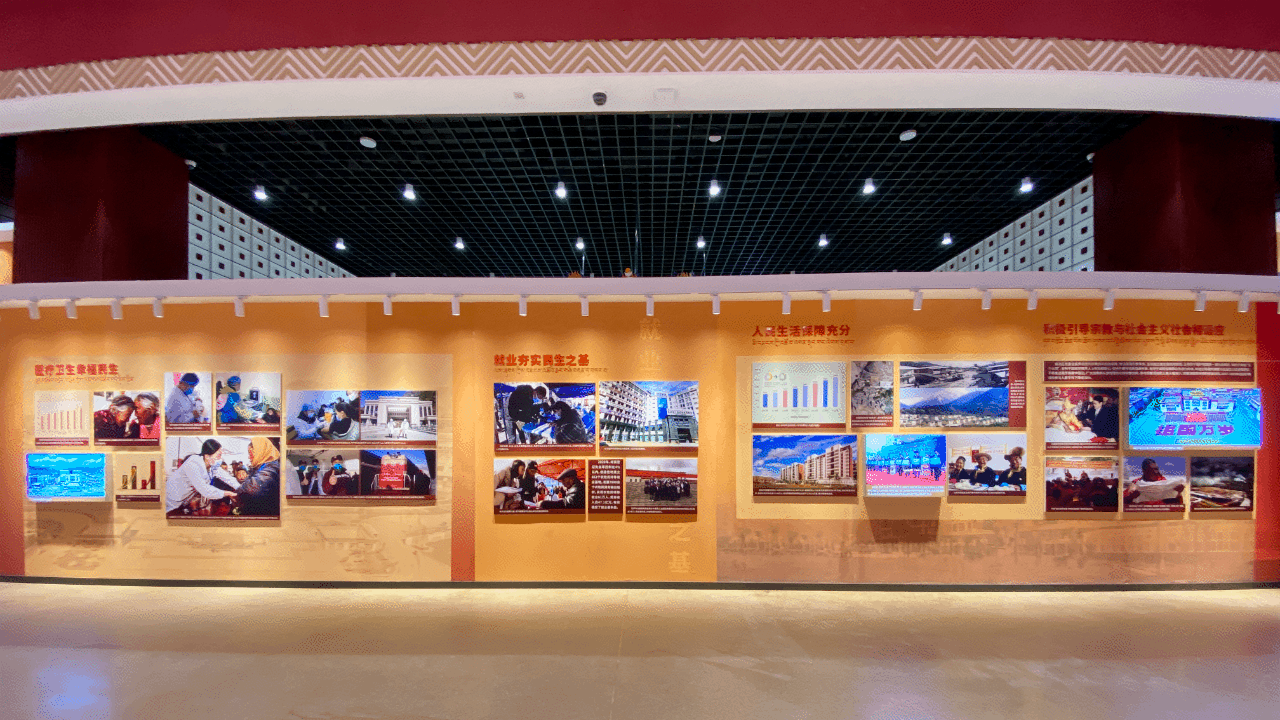 經(jīng)過7個(gè)晝夜的緊張?jiān)O(shè)計(jì)和施工,西藏和平解放70周年成就展順利開幕! 8月18日下午,全國政協(xié)主席汪洋率中央代表團(tuán)全體成員來到西藏博物館,為《黨的光輝照邊疆 錦繡高原譜華章——西藏和平解放70周年成就展》開館揭幕、發(fā)表致辭,帶隊(duì)參觀了成就展并予以高度評(píng)價(jià)! 《黨的光輝照邊疆 錦繡高原譜華章——西藏和平解放70周年成就展》由“偉大歷程”和“輝煌成就”兩個(gè)部分組成。展覽全面回顧西藏和平解放、民主改革、自治區(qū)成立、社會(huì)主義建設(shè)、改革開放、進(jìn)入新時(shí)代的歷史進(jìn)程,全景展示在中國共產(chǎn)黨堅(jiān)強(qiáng)領(lǐng)導(dǎo)下西藏經(jīng)濟(jì)社會(huì)發(fā)展取得的偉大成就。 《十七條協(xié)議》簽字儀式歷史照片、實(shí)行民族區(qū)域自治制度的展板、對(duì)口援藏資金圖表、《西藏自治區(qū)民族團(tuán)結(jié)進(jìn)步模范區(qū)創(chuàng)建條例》圖片……一塊塊展板、一張張圖片圖表,生動(dòng)展現(xiàn)了70年來西藏在黨的領(lǐng)導(dǎo)下取得的長足發(fā)展。 披星戴月,晝夜奮斗,金螳螂文化的設(shè)計(jì)施工團(tuán)隊(duì)見過太陽初升時(shí)的拉薩,也見證著西藏和平解放70周年成就的輝煌。金螳螂文化以匠心出品致敬西藏和平解放70周年,以經(jīng)年累月的專業(yè)和敬業(yè),努力做文化與藝術(shù)的傳播者。 目前,西藏博物館基本陳列——西藏歷史與文化展也正處于緊鑼密鼓的施工階段。金螳螂文化集結(jié)精銳力量,聚力呈現(xiàn)全新的西藏博物館,弘揚(yáng)藏地文化之美。