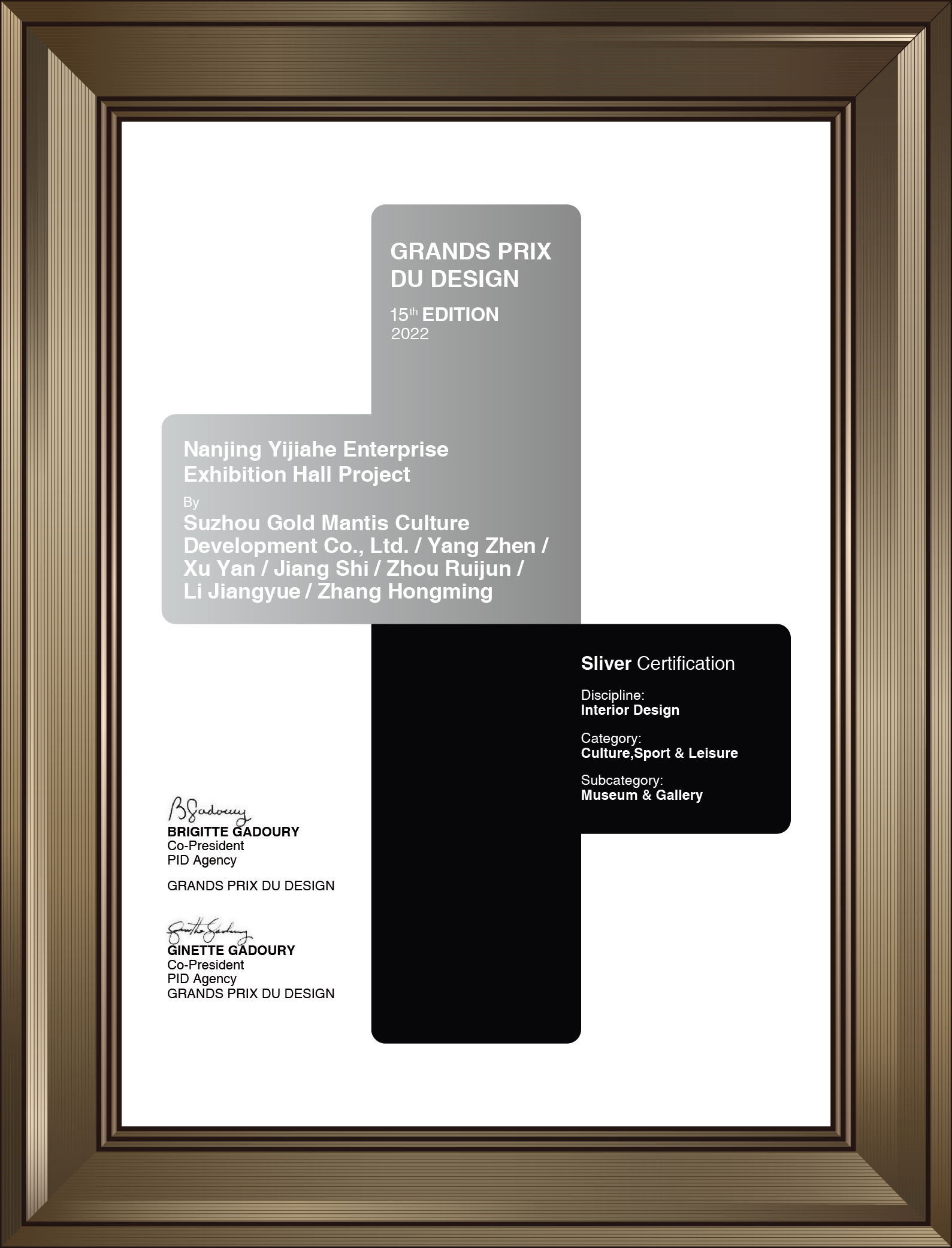 近日,第十五屆加拿大GPD設計獎 獲獎名單公布 金螳螂文化首次申報 從來自世界各地的 數百個入圍國際設計作品中脫穎而出 獲得 2金 2銀佳績! 蘇州博物館西館、元和塘展廳 榮獲金獎 南京億嘉和展廳、朗新科技產業園展廳 榮獲銀獎 加拿大GRANDS PRIX DU DESIGN設計大獎(簡稱:加拿大GPD大獎)是在加拿大創意設計之都蒙特利爾創立的設計獎項,是加拿大乃至國際最具權威的設計大賽之一。賽事主辦方同時擁有具30年以上歷史的SIDIM蒙特利爾國際設計展和《INTéRIEURS》設計雜志。 該競賽為所有合伙人、候選人、決賽者和獲獎者帶來國際認可,來自世界各地的專業人士、知名學者和有影響力的新聞工作者,用他們專業的知識、經驗來評估所展示的項目和產品的卓越性。 蘇州博物館西館位于蘇州高新區獅山廣場,規劃建筑面積4.83萬平方米,展廳面積1.31萬平方米。西館建筑由德國GMP建筑事務所設計,“十個盒子”建筑單體的組合與廊道交錯連接,又與蘇州水陸并行的街巷,江南錯落有致的民居不謀而合。 在蘇博西館這座城市新地標里,金螳螂文化帶來“純粹江南 · 蘇州歷史陳列”、“羅馬 城市與帝國”國際合作館開幕展覽與“書畫蘇州——館藏書畫”特展,以模數化、場景化設計打造被光包裹的詩意空間。 蘇州元和塘文化產業園區展示中心設計立足于江南蘇州的地域美學,同時提取蘇州園林概念,傳遞相城元和塘風貌及千年傳承文化。 金螳螂文化設計團隊以飛檐筑建筑之形,以西技中魂之手立營造之美。借助中式園林布局及建筑手法,使用現代工業材料,構建新的中式園林體驗的展示空間。 “應用智能科技,改善人類生活。”這個展廳既是探索機器人的旅程,也是探索億嘉和的旅程。走進億嘉和,直觀體驗智能機器人產品的應用場景,深入了解不同行業的智能機器人的研發與制造過程,近距離感受企業文化,透視億嘉和未來發展的方向。 展廳位于朗新科技產業園二層,總面積約2300平方米,展廳運用了藍、白、灰的色調,展現了科技感加藝術感的風格,宣傳企業品牌及發展成果。 設計引領,創新驅動。多年來,金螳螂文化深耕文化展示行業,探索文博、文旅、數字藝術的不同表達。 首次參賽即獲得4項大獎,是對項目設計團隊的創意成果以及金螳螂文化專業力量的認可。在此感謝業主單位及合作伙伴,祝賀獲獎設計團隊!愿未來之路,你我同行。