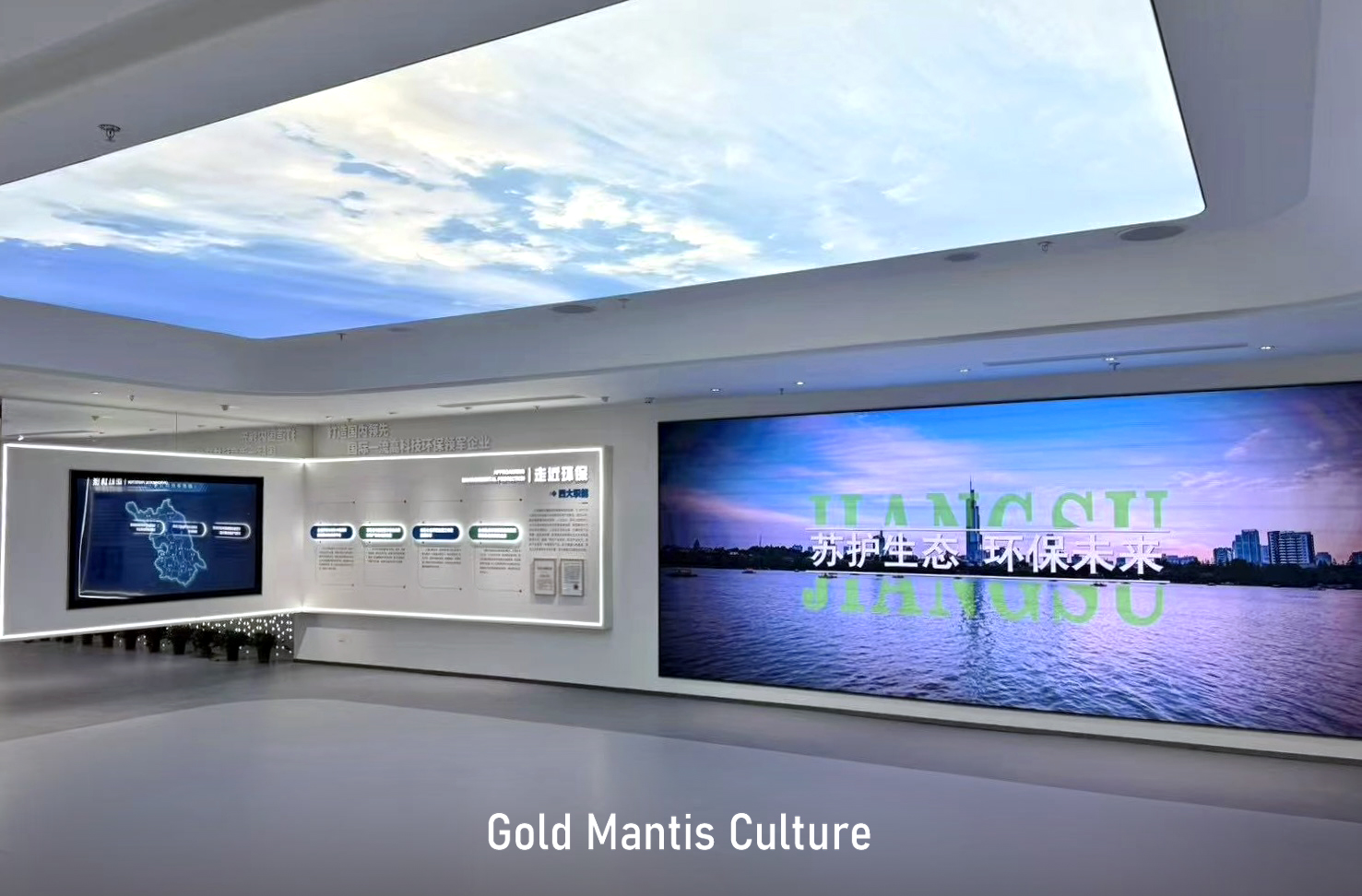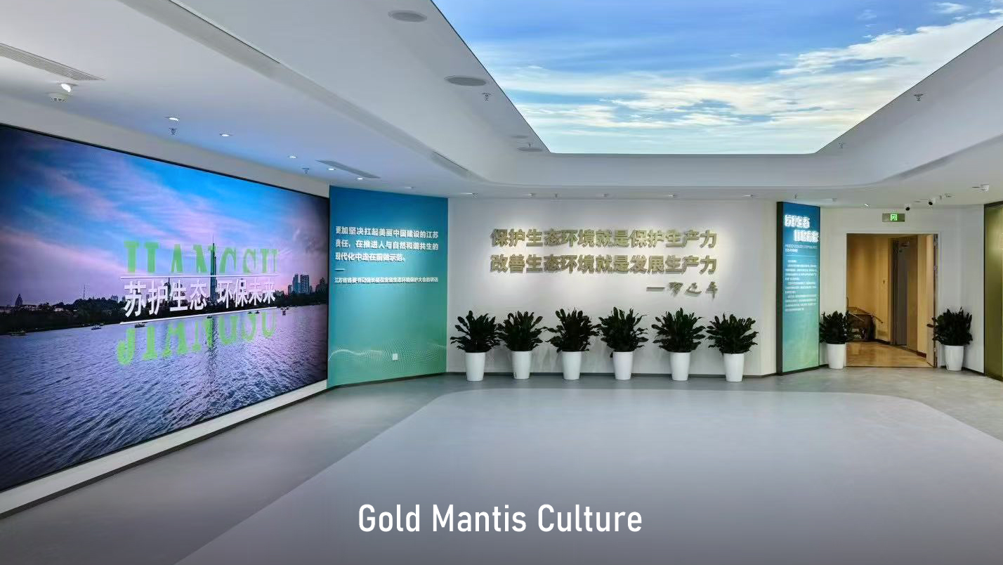 萬里長江順流而東 南京江心洲上春意盎然 在這座“生態科技城、低碳智慧島” 一批高端研發機構相繼落地 由金螳螂文化設計實施的 江蘇省環保集團江心洲科創基地展館 揭開神秘面紗 江蘇環保集團科技創新基地,位于中新南京生態科技島,總建筑面積約14.7萬平方米,由多功能辦公科研塔樓、環保創新實驗裙樓、下沉活動空間等部分組成,著力打造產學研用一體化的高能級科技創新平臺載體和高科技環保產業集群。 步入展廳,映入眼簾的是習近平總書記對保護生態環境、建設美麗中國的指示。 頂面提取自然元素,打造“天幕”,帶給觀眾自然生態感官體驗。 提質向新,逐綠而行。以互動屏幕方式展示三院兩中心架構及介紹。 以藍天碧水凈土、無廢城市、數字環保為落點,重點展示集團業務及綠色產業、裝備制造相關內容。